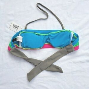ABS ALLEN SCHWARTZ Colorblock Blue Green Pink Bandeau Bikini Top