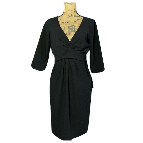 NWT ABS Essentials Dress 6 Black Empire V Neck 3/4 Sl Lined Deep V Neck Career