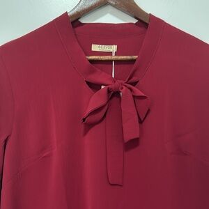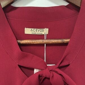 NWT ACEVOG Women’s Long Sleeve Burgundy Blouse with Bow size Medium