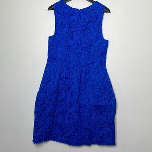 NWT ADAM LIPPES Cobalt Blue SEAMED Corded LACE Flare COCKTAIL Mini DRESS US 12