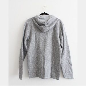 Brand new with tag. Flatlock stitches detail the front of an ultra-cozy slubbed-fleece pullover with an antidraft crossover hood and snap hems for movement on the court or off.