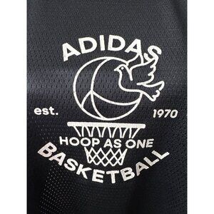 Make a statement in this NWT Adidas Hoop As One Netted Black Jersey Tank Top. A size XL, it features a flattering scoop neck and stylish dove design, perfect for any active woman.