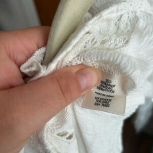 Brand new with tags. Adorable white eyelet blouse with hi low hem. WOMENS size small.