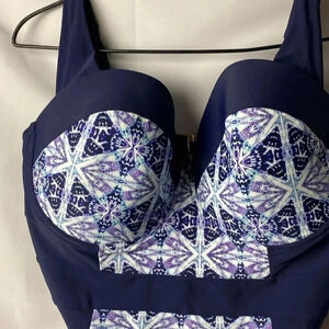 NWT ADORE ME LIANDRE ONE PIECE SWIMSUIT WO SIZE 40 H(BRA SIZE MEASURES LIKE A SIZE LARGE 12/14) NAVY PURPLE BACK HOOK LENGTH MEASURES APPROX 22” FROM STRAP TO TOP OF LEG OPENING CHEST WAIST MEASURES APPROX 16” FROM SIDE TO SIDE