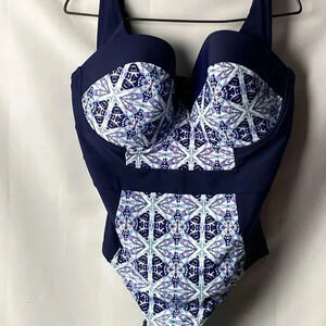 NWT ADORE ME ONE PIECE SWIMSUIT WO SIZE40 H(BRA SIZE 12/14)NAVY PURPLE BACK HOOK
