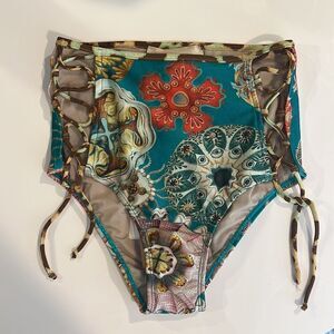 The perfect bikini bottom! Brazilian created, lace up sides for the perfect silhouette. Contrasting floral and leopard patterns, will pair perfectly with any solid black or white top.