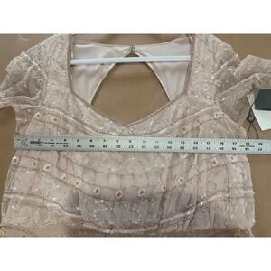 NWT ADRIANNA PAPELL DRESS 16 GOWN SEQUIN BEADED 3D FLORAL PINK EVENING FORMAL BLOUSON FLOWER SHELL PINK EVENING FORMAL LONG MAXI MESH SHORT SEMI SHEER FLUTTER SLEEVES SWEETHEART BACK CUT OUT