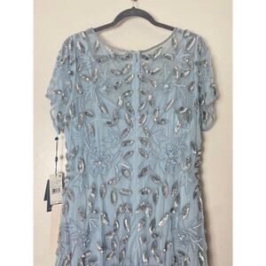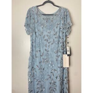 NWT ADRIANNA PAPELL DRESS GOWN 16W PLUS SEQUIN BEADED FLORAL GODETS BLUE HEATHER