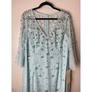 NWT ADRIANNA PAPELL DRESS GOWN 16W MOTHER OF THE BRIDE BLUE FORMAL EVENING