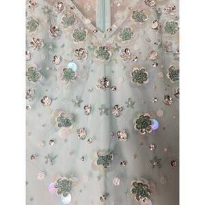 Details: full maxi length floor length, 100% polyester, lined, embellished mesh, classic, side slit, 3/4 sleeves semi sheer bell sleeve, v-neck neckline, very beautiful beading with sequin flowers and faux pearl embellishments, so classy and pretty