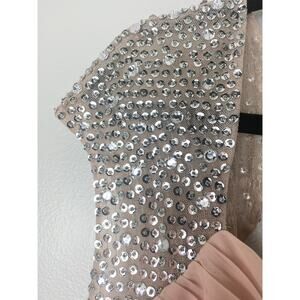 ADRIANNA PAPELL DRESS GOWN 16W BLUSH PINK SEQUIN BEADED RHINESTONE SHEER MESH LONG MAXI WHIMSICAL BALLETCORE BARBIECORE