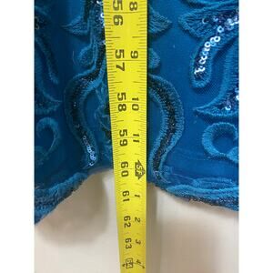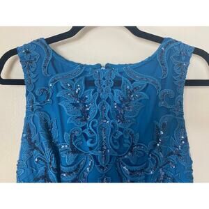NWT ADRIANNA PAPELL SEQUIN SCROLL LONG DRESS MAXI GOWN BLUE MULTI EVENING SKY