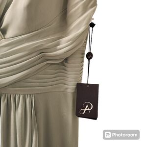 NWT ADRIANNA PAPELL MINT GREEN SLEEVELESS SHIRRED V-NECK CHIFFON GOWN 10