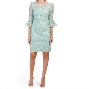 NWT ADRIANNA PAPELL MINT Lace Bell Sleeve Wedding Cocktail Party V Back Spring 2