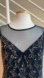 NWT ADRIANNA PAPELL Silver Beaded Illusion Yoke Sheath Cocktail Dress Dark Blue