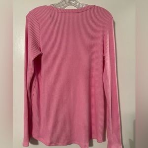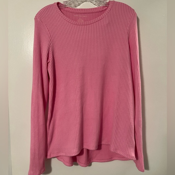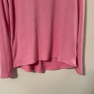 Soft bubblegum pink ribbed AE legging long sleeve tee. Slight high-low design for extra booty coverage.