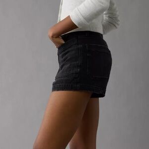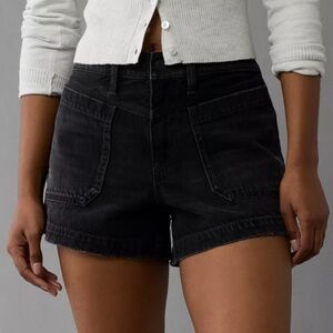 NWT American Eagle Strigid Washed Black Super High-Waisted Relaxed Denim Short (Size 25)