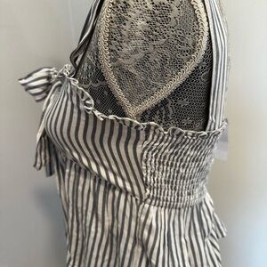NWT AE Tie-Front Babydoll Blouse Blue/White Stripe. Sweetheart Neck. Sleeveless. Small.