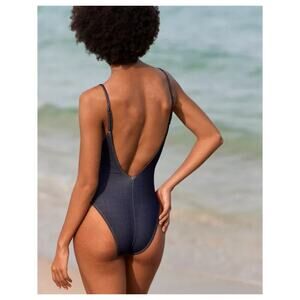 NWT AE x Aerie Match Made In Denim Plunge Cheekiest One Piece Swimsuit