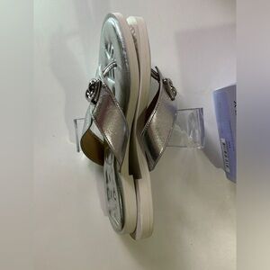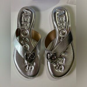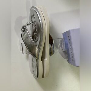 NWT AEROSOLES Galen Metallic Silver Flip Flip Thong Comfort Sandals 8