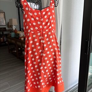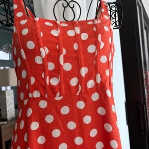 Bright and happy polka dot dress by AFRM. Nice pop of color for your wardrobe. Double layer paneled bodice with seaming detail