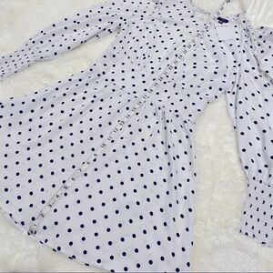 NWT AFRM Polka Dot Long Sleeve Cutout Smocked Mini Dress, Size Small