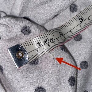 *Note: Small defect. Thread was running on right front sleeve, please see photos with red markings. Not too noticeable.
