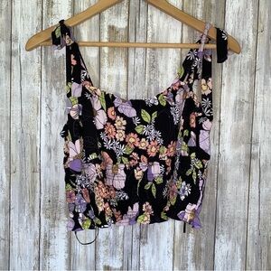NWT AFRM Stein Smocked Crop Top Noir Summer Black Floral