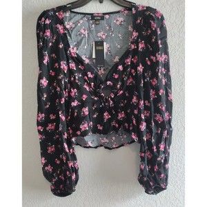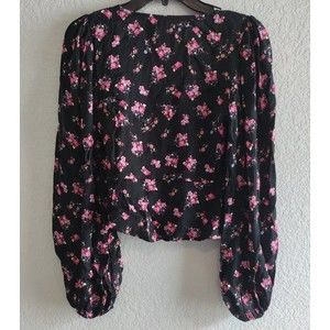 NWT! AFRM Women's XS Hart Print Peplum Long Sleeve Blouse Noir Blush Floral