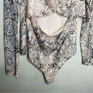 ✨NWT AFRM X Nordstrom Blue Tan Snake Reptile Skin Cutout Thong Bodysuit Size XL