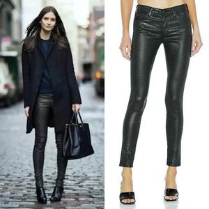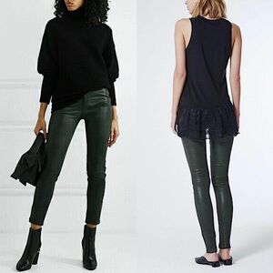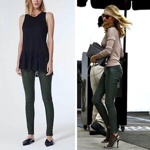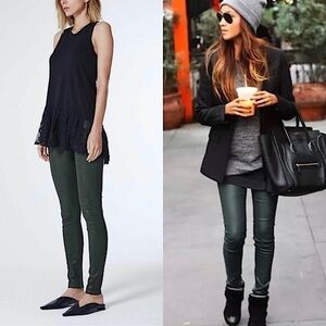 NWT AG 100% Lamb Leather Deep Forest Green Skinny Cigarette Pant Leggings 24