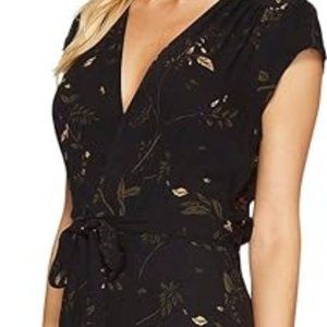 New with tags, Daphne Maxi Wrap. Black floral print, actual wrap tie closure. V-neck, short sleeves. Rayon.