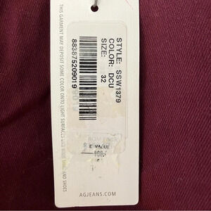 NWT AG Adriano Goldschmied Farrah Skinny High Rise Ankle Red Wine Jeans Size 32