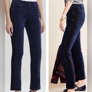 NWT AG Adriano Goldschmied for Anthropologie Mari tuxedo stripe High Rise Straight Leg Pant, Size 26. Color is called Deep Trenches which is a dark blue with a black tuxedo stripe down the side of each leg. for women features a snug fit around hips, straight leg, and slim leg opening. This women's jean is designed in a lightweight velvet fabric with added super stretch for a comfortable wear. Finished with a classy tuxedo stripe for most versatile styling. New with tag!