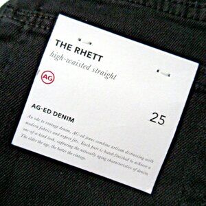 Details: * The Rhett is a 90s-style jean in deep black hue. The Rhett is cut with a flattering high-rise waist and fits relaxed from hip to hem. The pant is finished with a blunt, cropped length. High rise. Raw hem. Zip fly, button closure. 5 pocket. Machine wash. By AG; imported. *