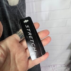Brand new with tags. Grey dress, crisscross top, stretch fabric. Size 6. The chest measures 17 inches across.