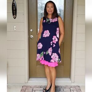 NWT AGNES & DORA Swing Tunic Tank Navy Peony