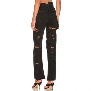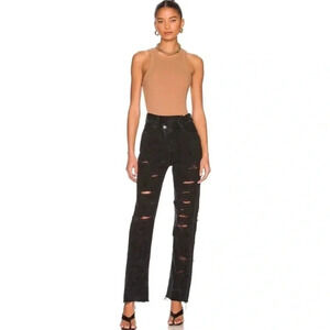 NWT AGOLDE Criss Cross Straight Jeans High Rise Distressed in Black Feverish