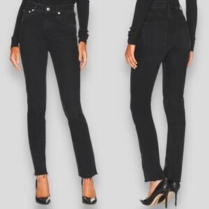 NEW AGOLDE CHERIE HIGH RISE STRAIGHT JEANS SPATIAL BLACK COTTON FRAY HEM