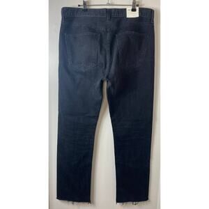 -100% cotton, Made in USA, Style A084B-998, zip fly, light whiskering with subtle faded detail, frayed hem, MSRP $198
