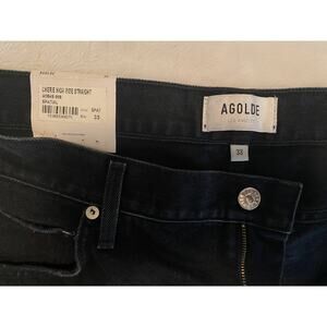 NWT AGOLDE JEANS 33 BLACK CHERIE HIGH RISE STRAIGHT FRAY HEM GRUNGE WHIMSIGOTH