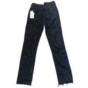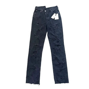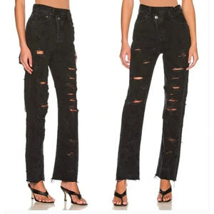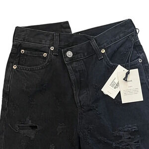 NWT AGOLDE Jeans Criss Cross Black Straight Distress Raw Hem Size 24 Ret…