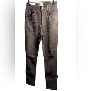 NWT AGOLDE “Nico” high rise slim fit 5 pocket Zip fly faded soft black jeans 24