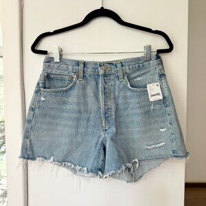 New with tags. AGOLDE Parker high-rise longline denim shorts in Swapmeet light wash blue, size 26.