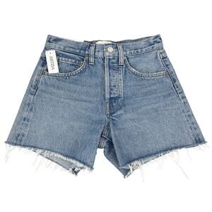 NWT AGOLDE Parker Long Mid Rise Cut-Off Denim Shorts Size 22 Fairway