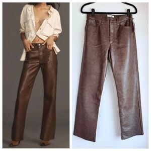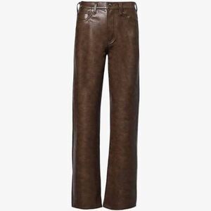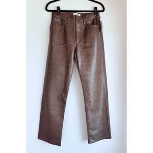 NWT AGOLDE Sloane Recycled Leather Mid Rise Straight Leg Jeans in Cola Brown 27