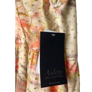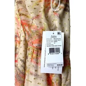 NWT Aidan by Adrianna Papell Coral Metallic Dotted Gold Fleck Halter Tiered Maxi Dress Summer Wedding Guest Gown