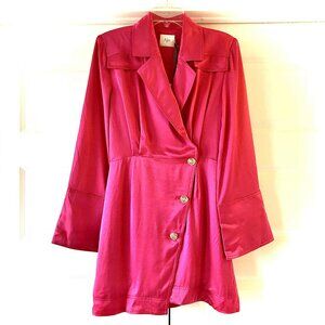 NWT AJE Echo Mini Shirt Dress Blazer Hot Pink Satin 10 MSRP $580