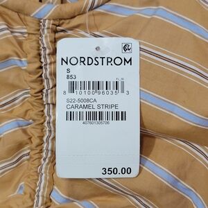 AKNVAS Colette Stripe Ruched Crop Top in Caramel Stripe Size Small