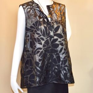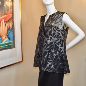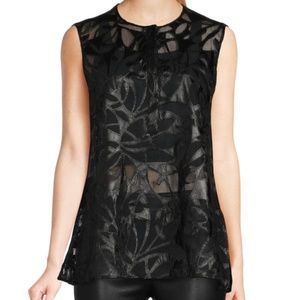 🏷️ NWT AKRIS PUNTO Laser Cut Faux Leather Top with Camisole in Black 🇨🇭Swiss